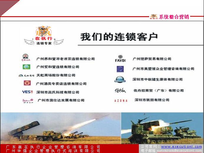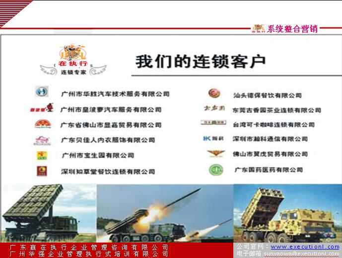 4、打造企业个性化的盈利管理模式――――“赢在执行”项目实施后不能为客户带来效益,承诺将全额退款。
