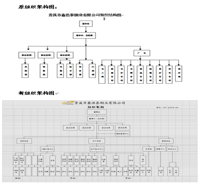 根据公司组织架构建立原则:1、适合公司发展需要 2、扁平化、简单化 3、各部门可相互制约 4、团队运作、分工合理、没有内耗 5、梯队人才建设 增设并调整优化组织架构。一个好的、合理的组织架构就好比建高楼大厦的框架结构一样,能使公司的运作高效、良性发展,同时各单位之间可相互监督、制约。明确各部门、各岗位的职能及岗位职责,加强公司的运作控制。