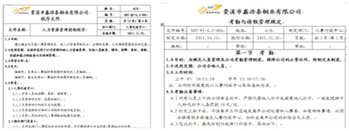 每份流程、制度、部门职能与岗位说明书,作业指导书都召集相关部门的责任人员进行研讨、互动,充分采纳各参会人员的宝贵意见。在鑫浩泰公司现有运作的基础 上,加上赢在执行的标准、制约、责任的相关要求,制定出符合鑫浩泰实际需要的标准化文件。共完成规章制度、程序文件、作业指导、岗位职责等63份,这些需 要大家去共同维护、遵守、执行,而且是长期的,领导管人、流程管事,制度不是针对某一个人的,所有人都必须严格遵守,这是一个员工的最基准准则。